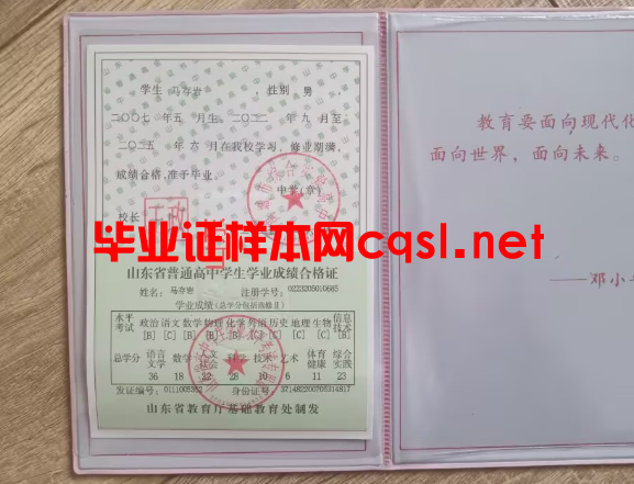 山东青岛市城阳第一高级中学高中毕业证样本图片